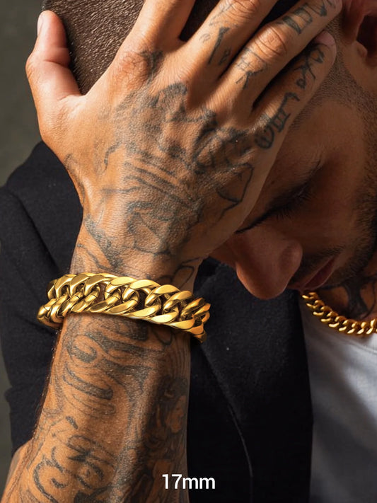 Men Stainless Steel 17Mm Cuban Chain Bracelets Chunky Franco Gold Plated Chain Bracelet 7.5 Inch Chains Jewelry Birthday Valentine Graduation Father Day Gifts